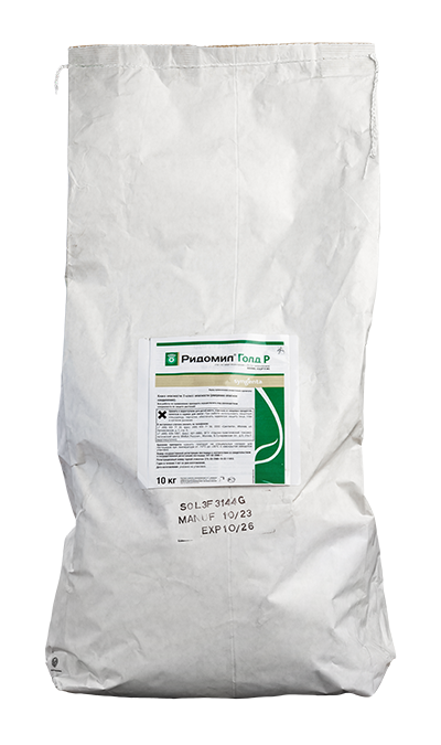 РИДОМИЛ ГОЛД МЦ эффективно подавляет патогены из класса Оомицеты (возбудителей фитофтороза, ложных мучнистых рос) и имеет дополнительный эффект против грибов родов Alternaria, Gloeosporium, Cladosporium и др.