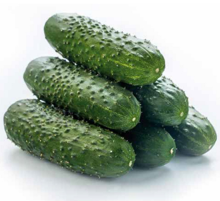Плоды: Очень однородные, плотные, отличного вкуса и аромата, без горечи, насыщенной темнозеленой окраски, глянцевые, длиной 11-13 см